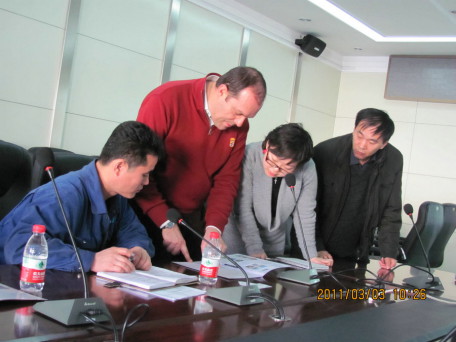 2011年俄方技術(shù)總監(jiān)來我公司針對電廠大型機組安裝超聲波除水垢機器,親臨現(xiàn)場制定安裝方案。